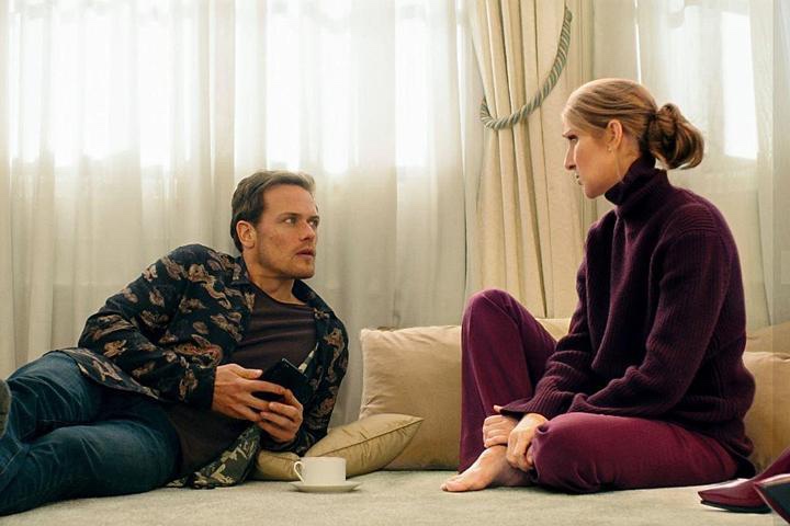 As a way to cope with her loss, she decides to start texting her boyfriend’s old number. That number has been reassigned to music critic Rob (Sam Heughan) who, instead of dismissing these texts as spam, like a normal person, is intrigued by them. He believes he’s fallen in love with someone he’s never met. At work, he is assigned with writing a profile on megastar Celine Dion (as herself, and yes, there are new Celine Dion songs in this movie), despite somehow being unfamiliar with her work. She doesn’t talk about her life or career, really, she decides to meddle in this man’s life and make this romance happen. It does, but of course it’s predicated on this horrible secret that has to come out eventually.
