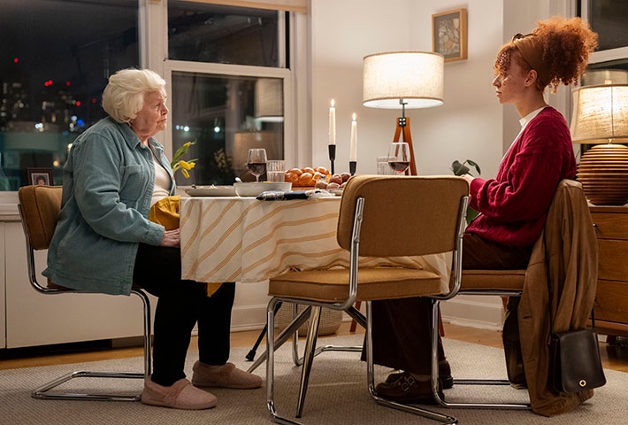 94-year-old Eleanor Morgenstein (Squibb) lives with her friend Bessie (Rita Zohar) in Florida. Eleanor and Bessie have lived together for over 50 years. Once Bessie suddenly passes away, Eleanor goes to live with her daughter Lisa (Jessica Hecht) in New York, where she is originally from. Lisa sends her mother to an event at the local JCC, hoping she’ll make friends. Eleanor stumbles into a meeting for Holocaust survivors, and begins to tell Bessie’s story, and everyone mistakes this story as her own. Eleanor doesn’t correct them, and this snowballs into a larger lie when journalism student Nina (Erin Kellyman), who is writing a piece about Holocaust survivors, befriends her and wants to know more. Eleanor finds herself with a new lease on life, but it’s all contingent upon this life story she’s passing off as her own.