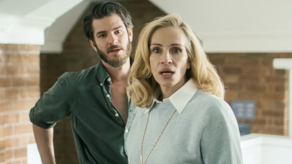 Alma (Julia Roberts) is a philosophy professor at Yale. She and her colleague Hank (Andrew Garfield) are both up for tenure, and they’ve always had a flirty banter, even though Alma is married to therapist Frederik (Michael Stuhlbarg). Alma’s current favorite student (Ayo Edebiri) comes to her shaken, saying Hank drunkenly assaulted her. This puts Alma in an uncomfortable situation, wanting to support her prized pupil, who may harbor romantic feelings for her, and also not wanting to throw her friend and secret crush under the bus. Complications ensue.